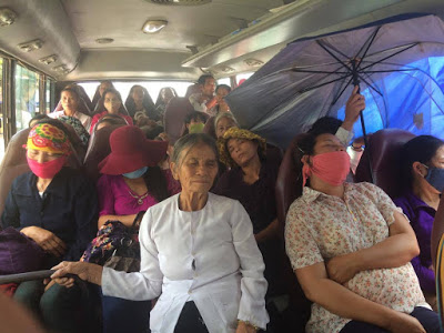 Mọi người trong xe mệt mỏi trong chuyến hành trình khởi hành từ sáng sớm lại còn bị côn an sách nhiễu gâ y khó khăn
